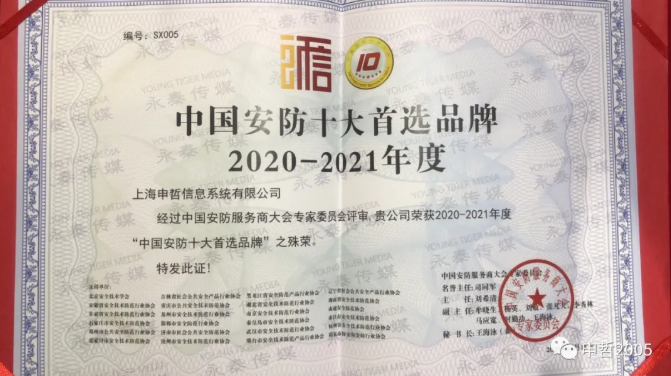 上海申哲再獲“中國(guó)安防十大**品牌”殊榮